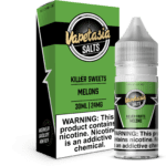 VAPETASIA® Killer Sweets Melons Salts blends juicy watermelon, honeydew, and cantaloupe into a mellow candy rush that drips with summer vibes.